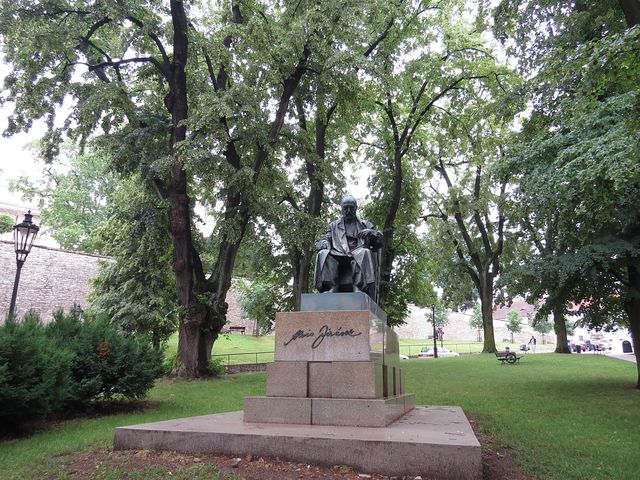 Piaristé přišli do Litomyšle v roce 1640, vybudovali kostel, kolej, gymnázium i klášterní zahrady, které se rozkládají na ploše jednoho hektaru mezi barokním kostelem Nalezení sv. Kříže a gotickým kostelem Povýšení sv. Kříže. Po odchodu piaristického řádu v roce 1948 zahrady zpustly a nebyly až do roku 2000 přístupné veřejnosti. Část obvodových hradeb zůstala zachována, část byla dostavěna – na jedné kamenné stěně je bronzová replika zkamenělé ryby uchované v 90 milionů let staré opuce pocházející z okolí Litomyšle, jak jsme s úžasem četli na přiložené tabulce.
