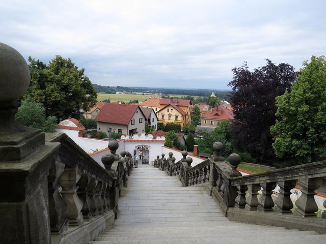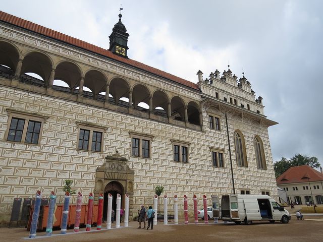 Starobylé Litomyšli, vystavěné poblíž důležité Trstenické stezky a obdařené městskými privilegii od Přemysla Otakara II., bylo věnováno nejvíce času – absolvovali jsme okruh vnitřním městem, pak zašli na zámecké návrší a během poutavého výkladu pana Netoličky obdivovali piaristický kostel Nalezení sv. Kříže, prohlédli si až kalendářově krásný zámek a nádvoří, bývalými klášterními zahradami, zpřístupněnými po opravách v roce 2000, prošli ke gotické bazilice Povýšení sv. Kříže a v chrámovém interiéru si užívali zasvěceného výkladu našeho profesora.