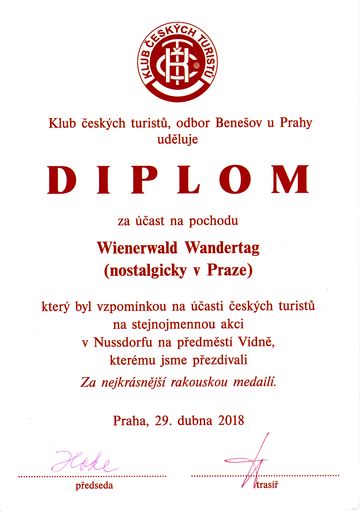 V devadesátých letech jsme se několikrát zúčastnili akce pořádané rakouskými turisty v Nußdorfu na předměstí Vídně – my jsme jí říkali pochod Vídeňským lesem, v jiných českých odborech putovali Za nejkrásnější rakouskou medailí.