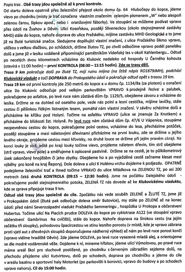 Od pořadatelů jsme dostali podrobné propozice pochodu – ty pro nás byly v členitém a neznámém prostředí velice důležité – také čtenáři v nich v případě zájmu naleznou podrobnosti o cestě nádherným pražským okolím.