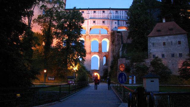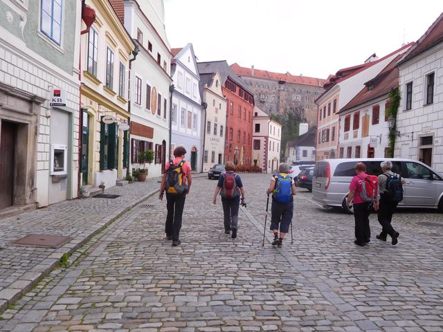 Poslední úsek z dnešního 22ti kilometrového přídělu jsme absolvovali v magicky nasvíceném centru Českého Krumlova – vzhledem k dosud ne zcela překonané koronavirové krizi bylo v ulicích minimum lidí, takže město, které je v běžných časech obětí své proslulosti, volně oddechovalo a my jsme v klidu spřádali plány na zítřejší návštěvu Zlaté Koruny a výstup na Kleť.