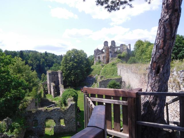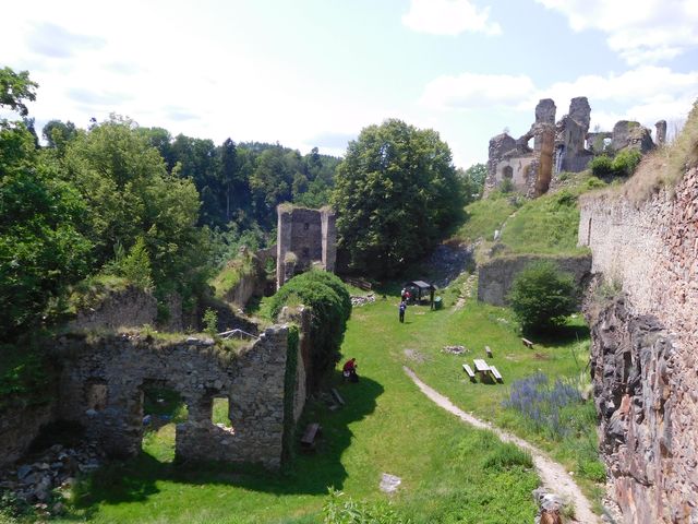 V pořádku, ale se zdržením jsme dorazili do hlavního cíle cesty: hrad Dívčí Kámen na skále nad soutokem Křemžského potoka a Vltavy jsme navštívili už několikrát a pokaždé nám poskytl nové zážitky. Historie Dívčího Kamene a fotografie z místa jsou ve článku z roku 2013.