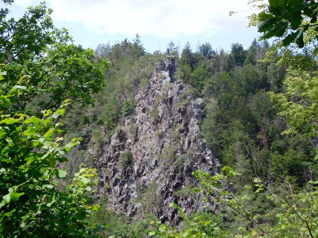 V dnešním článku se zaměřím na Dívčí skálu, skvěle viditelnou z hradního ostrohu: Tento impozantní výtvor přírody je hlavní součástí zdejší přírodní rezervace o ploše 50 ha. Téměř kolmá stěna z granulitové žuly je asi 70 metrů vysoká a pouze 20 metrů široká.