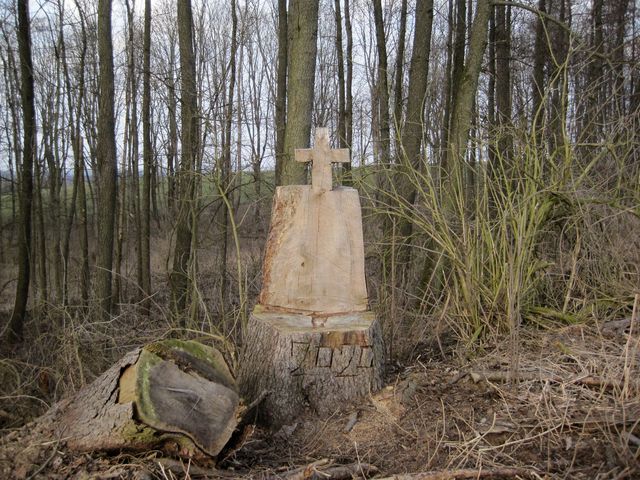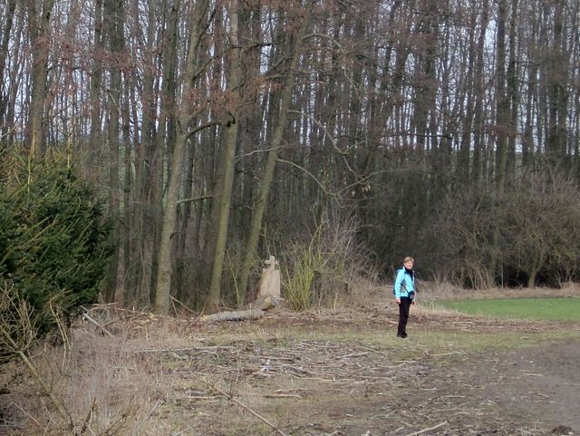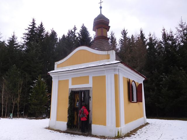 U nádraží jsme přešly na zeleně značenou turistickou trasu vedoucí na Starý Rounek, dále dobytčí ohradou (v této době prázdnou) neznačenou cestou k hájence blízko poutní kaple u sv. Antonína.