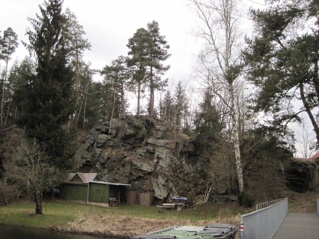 Vrátily jsme se do Rantířova a vystoupily na skálu nad bývalým vodním dílem z poloviny 16. století – soukeníci ji tehdy využívali jako valchu, zadržená voda tekla odtud náhonem k jezu v místech u dnešního zámku a využívala se jako pohon pro práci mlýna, který tu stával.