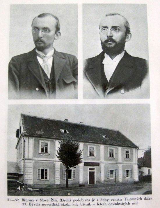 Otokar Březina v Nové Říši, a škola, kde učil.