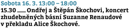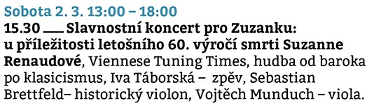 Návštěva Petrkova se dá pokládat za odměnu – letos zjara jsme si ji s Ivou dopřály hned dvakrát. V programu nás zaujal koncert při příležitosti 60. výročí úmrtí básnířky Suzanne Renaudové (30. 9. 1889 Lyon – 21. 1. 1964 Havlíčkův Brod).