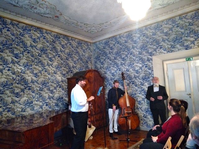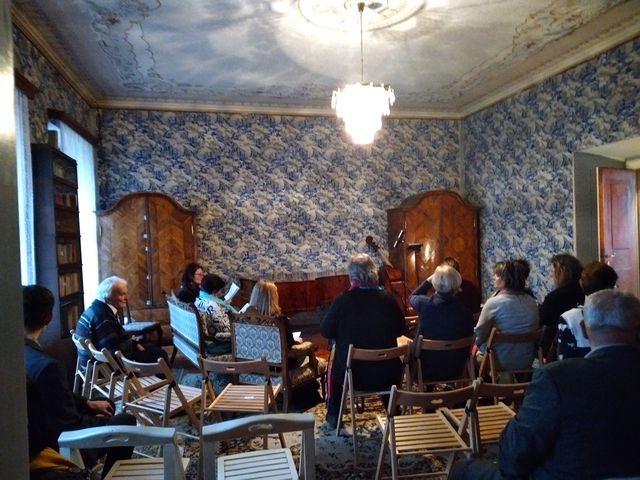 Poprvé jsme měly možnost prožít koncert v tzv. modrém pokoji, což býval obývací pokoj rodiny Reynkových.