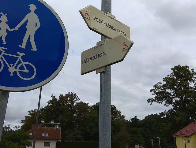 Šli jsme podle popisu, zastavili se u Hliníka a švestičky, pak jsme itinerář upravili tak, abychom prošli celou vozíčkářskou trasu, která byla v lesoparku pod Orlíkem vybudovaná a otevřená na podzim v roce 2020.