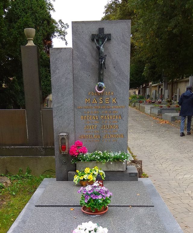 Pak už jsme vyjeli k Jihlavě, ale cestou se zastavili na okraji Humpolce na hřbitově vedle Zichpilu, kde je pochovaný dlouholetý předseda odboru KČT Humpolec Pepa Jelínek.