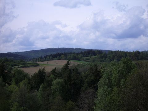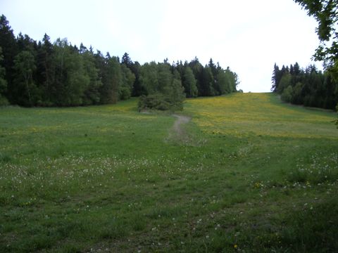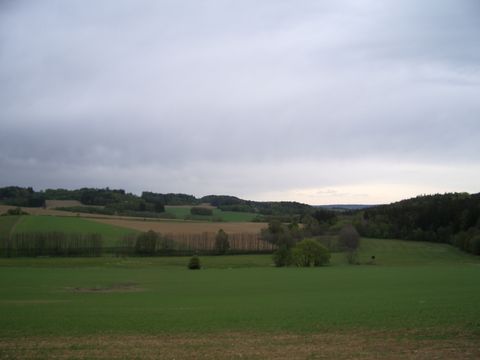 Za Krahulčím na kopci se otevřel nádherný pohled do krajiny, viditelnost po dešti byla velmi dobrá – přikládám krajinku s Javořicí, abyste viděli, že značit na Telčsku je pohoda, i když žlutá barva je prevít.
