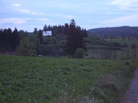 A co tenhle podvečerní pohled na kostelík sv. Jáchyma, který svítí na kopci?