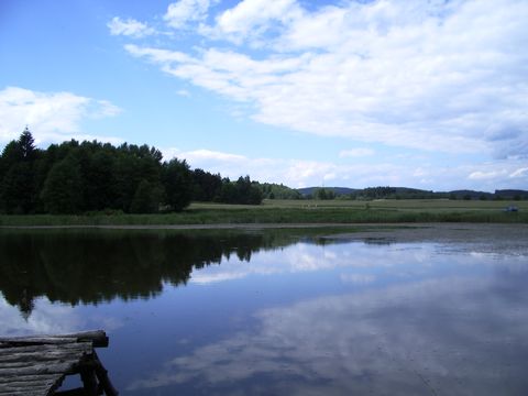 V okolí je soustava rybníků, z nichž jeden, nazývaný běžně Romantika (proč asi?) nás zaujal. V pozadí vidíte Javořici a možná tušíte vysílač, který je vidět odevšud, ale na naší fotce…