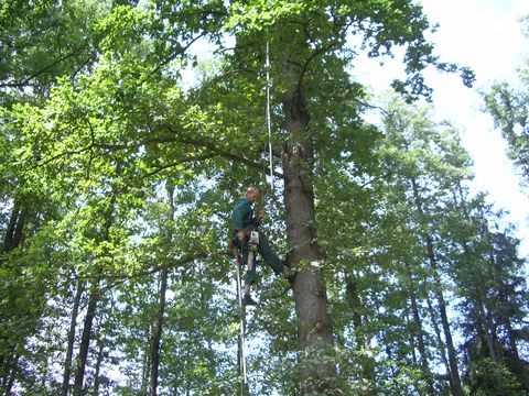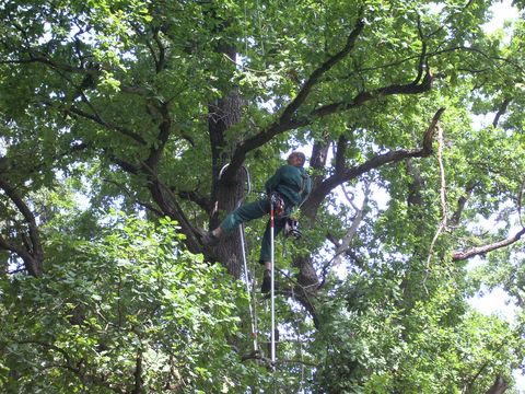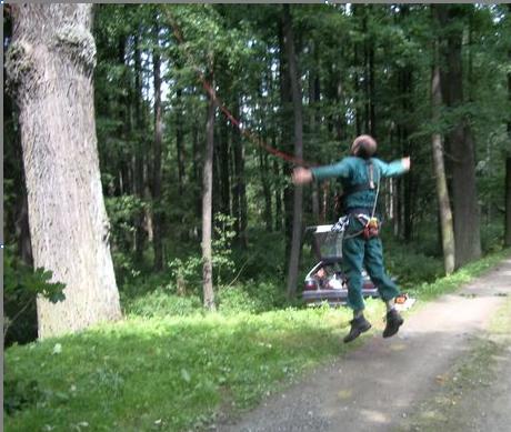Stromy, více jak dvacetimetrové, do jejichž korun lezl, se musí ošetřovat. Je několik druhů řezů, které se užívají a je třeba provádět je tak, aby stromy po zásahu vypadaly přirozeně – tedy hotová věda. To ještě chápu, že se dá naučit, ale to, co předváděl při šplhání po větvích se musí vidět na vlastní oči, to je nesdělitelné. Měl jakési zahnuté tyče (podle vlastního návrhu), s jejichž pomocí překonal vzdálenost k prvním větvím, pak se zavěsil na laně a začal pracovat s motorovou i ruční pilou.