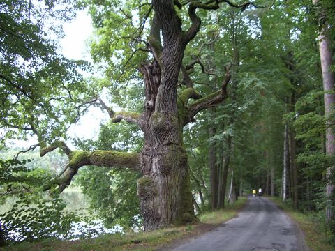 Nová řeka je umělý, asi 15 km dlouhý kanál, který odvádí část vod z Lužnice do Nežárky. Vybudoval ho v 16.století Jakub Krčín, stavba trvala rok a půl. My jsme se vydali starou a slavnou dubovou alejí na břehu Nové řeky směrem k jihu. A tady se to stalo! Je téměř jisté, že když tam někdy přijedete, uvidíte rybníky, lesy, staré aleje, ale je velmi nepravděpodobné, že budete mít stejné štěstí, jako jsme měli my – že uvidíte stromolezce. Ohromil nás svým uměním a odvahou, chci se s vámi podělit o ten skvělý zážitek. Strávili jsme na hrázi, kde prováděl prořezávku stromů, dobrou hodinu, dozvěděli jsme se od něj různé zajímavé věci, ale jak se jmenuje nevíme. Říkáme mu se vší úctou „pan Veverka“. To je on:
