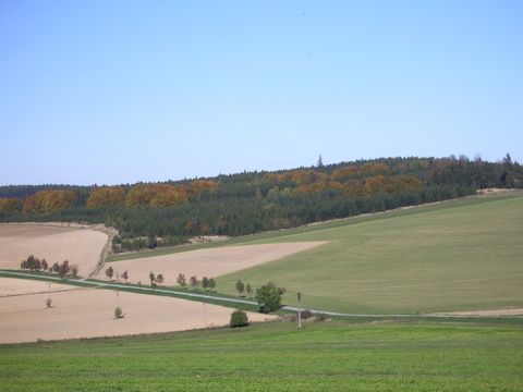 V Krasonicích je hezký zámeček (o něm ale až někdy jindy), my jsme vsí ani neprošli, hned na začátku jsme odbočili a polní cestou jsme mířili k lesu.