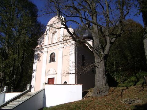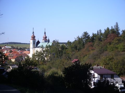 Přicházeli jsme sem po silnici a po pravé ruce jsme měli kopec Kalvárii (kolem 600 m n.m., údaje se v mapách různí, ale při výstupu ze vsi je to hóódně vysoko), kam jsme se chtěli (bude-li čas a nálada) taky vypravit. Teď nás ale vcucly pivočáry do místní hospody, i jídlo bylo a taky puštěná televize, kde se chystala Velká pardubická, ale my jsme, bohužel, 20 minut před jejím začátkem zvedli krovky a frr… ještě je čas dojít k přehradě. Procházeli jsme obcí, jejíž vznik se datuje do 1. poloviny 13. století, a která se chlubí významnými rodáky – ve druhé polovině 18. století se zde narodili slavní hudebníci – skladatelé Pavel a Antonín Vraničtí, v roce 1921 tu spatřil světlo světa hudební skladatel Jan Novák. Ten studoval také v New Yorku u Bohuslava Martinů, byl vynikajícím pianistou a pedagogem, v roce 1968 emigroval a zemřel 1984 v Německu.