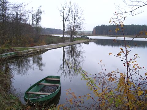 Vpravo od naší cesty je ostroh, kterému se říká prý podle koček, které zde v hojném počtu zůstaly poté, co tvrz, která stála na skalnatém ostrohu, byla pobořena nepřítelem. A nejen kočky tu zůstaly, podle pověsti i hojné zásoby vína ve sklepích…Takže jsme se domluvili, že na příští pochod si vezmeme sebou krompáče a lopaty…Při tom plánování jsme stačili sledovat tok říčky, která tu za Telčí teprve nabírá odvahu k životu.