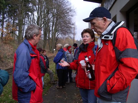 Povzneseni na duchu jsme došli do Slaviboře, kde byla kontrola (razítko jsme si dali do vandrbuchu sami), přítomný kontrolor nám nalil horký čaj, podle přání prodal pivo a tak jsme dobrou vůli spolu měli…