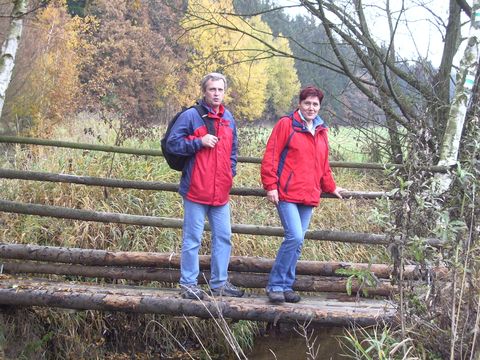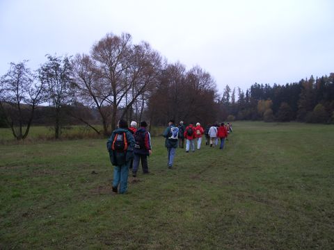 V sobotu 3.11.2007 pořádali telčští turisté už 37. dálkový pochod, my jsme si vybrali 15 km trasu z Dačic. Naše nohy ale vědí, že to bylo kilometrů šestnáct (i měření přístroji to ukázalo), ale nešť, nějaký kilometr nehraje roli a z pohledu pořadatelů to napsané vypadá výtvarněji a neděsí to tolik. Do Dačic jsme dojeli vlakem v 9,22 hodin, na nádraží jsme se přihlásili na start (startovné 15,-Kč – za něj diplom s razítkem pochodu, dobrý horký čaj na kontrole ve Slaviboři a chleba se škvarkovým sádlem v cíli) a po zelené značce jsme se vydali údolím Moravské Dyje k Telči. Je to pochod velmi nenáročný, v podstatě je to společenská záležitost – cestou jsme si povídali se soukmenovci a užívali si podzimní přírody. Výhledy nic moc, bylo mlhavo, chvílemi mlha i padala, chvílemi skoro jako by slunko chtělo…ale ne, k tomu nedošlo. Dobrá nálada, kterou jsme si sebou přinesli, byla ještě vylepšována z různých butelek slivovičkou (rumem), ale to neznamená, že bychom se kromě ochutnávání nevěnovali i zvyšování znalostí historických a přírodovědných. Na výřezu mapky vám ukážu, kudy jsme šli, vynechala jsem start a cíl, aby zbylo více místa na vlastní trasu.