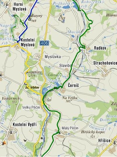 Trasa: Dačice – Malý Pěčín – Velký Pěčín – Černíč – Slaviboř – Radkov – Telč