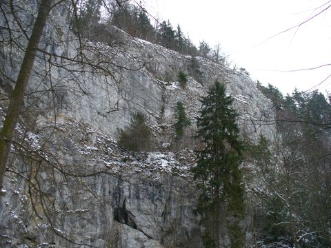 Po asi 2 km jsme došli ke vchodu do Punkevních jeskyní. Zkusili jsme vyfotit příslušnou skalní stěnu (140 m).