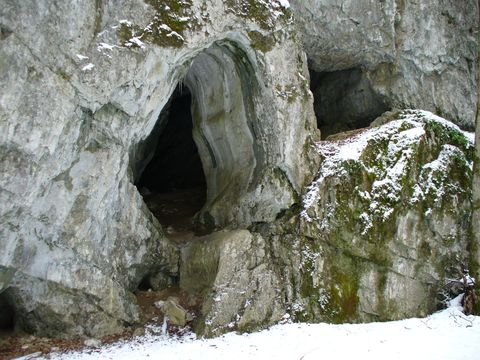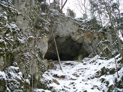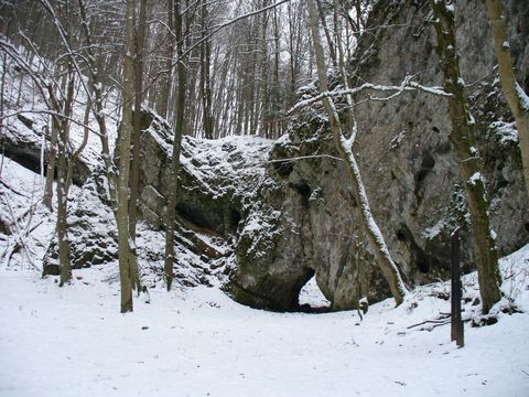 To jsme šli stále po žluté TZ ke Kateřinské jeskyni, která leží kousek od Skalního Mlýna a od listopadu do ledna bývá uzavřená kvůli zimovišti netopýrů – prý jich tam je asi 200.