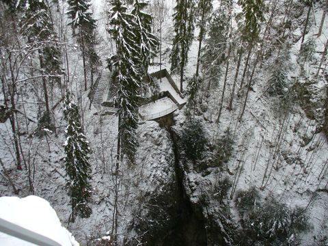 z něj vidět Horní můstek, který je ve výšce 138 m na hraně propasti: