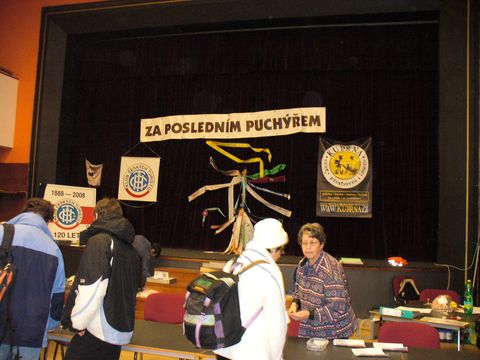 Na rozcestí u Obůrky jsme přešli na modrou TZ a došli do Blanska. Večer byla v Dělnickém domě zábava. Pořadatelé nabídli i duc-duc diskotéku (hojně navštívenou) a během večera různá vystoupení všelijakých šikovných lidí – např. trojitou mistryni světa v krasojízdě na kole, irské tance, bubeníky s africkými rytmy, kteří uvedli některé přítomné úplně do extáze. A taky se (jak už jsem napsala) vyznamenávalo a proběhlo předání puchýřovské štafety dalšímu pořadateli, což je pro rok 2008 KČT Loko Teplice (14. – 17. 11. 2008). Předali si i korunu – král je mrtev, ať žije král! Tak to chodí.