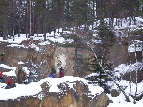 Ucho, Ústa a Oči symbolizují nejen tři druhy komunikace, ale i tři způsoby totalitních praktik – odposlouchávání, udávání a sledování. Nebo můžete při procházce v lomech a lipnických lesích klidně zapomenout na společenské řády a politiku a obdivovat jen nápadité anatomické ztvárnění částí lidského těla v žule.