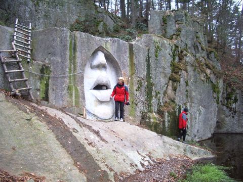 Vidíte, že až k Uchu a Ústům můžete přijít, kdežto Oči můžete obdivovat jen zdálky – zato se krásně zrcadlí na hladině zatopeného lomu.