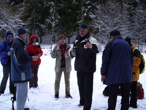 V dobré pohodě a náladě jsme před třetí hodinou došli beze ztrát na životech do Havlíčkova Brodu a zvláště mužská část výpravy se těšila na zasloužené pivečko, ale bylo silvestrovské odpoledne, a tak se všechny hospody připravovaly na šrumec a otevíraly až večer…Nepříliš nadšení jsme vstoupili do nádražní restaurace a byli jsme velmi mile překvapení – dostali jsme dobré jídlo, i zima tu byla menší než venku a nesněžilo tady…Bývali bychom stihli vlak krátce po čtvrté, ale pro všeobecnou spokojenost bylo rozhodnuto odjet odtud až před pátou hodinou. Nasycení, spokojení a mírně znavení všemi dnešními aktivitami jsme přjeli domů do Jihlavy a byli jsme připraveni hupsnout do víru silvestrovské noci (i když jsem si jistá, že během cesty si někteří z nás představovali, jak by bylo krásné hupsnout na gauč).
