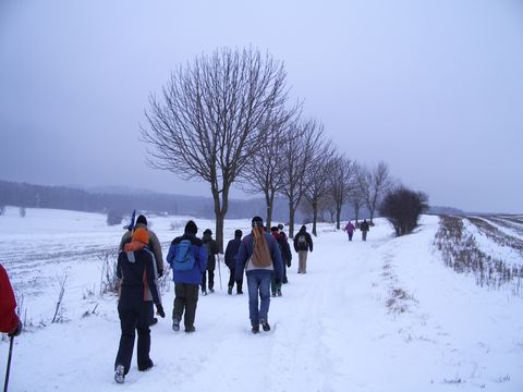 Už několik dní řádí na Vysočině vichřice, sněhové jazyky znemožňují dopravu, stromy se lámou, silničáři jsou zoufalí… a při tom všem se sokolové rozhodnou, že budou na Čeřínku (tradičně) zapalovat oheň k uvítání nového roku. My turisté z KČT Čeřínek při tom samozřejmě nemůžeme chybět. Ale je třeba, aby to počasí se umoudřilo – a zní to neuvěřitelně, v sobotu 5. 1. vítr téměř ustal. Alespoň tam, kde jsme se pohybovali my. Pravda, ráno neslibovalo bůhvíco, ale krátce po desáté, když jsme vystoupili z vlaku v Dolní Cerekvi, už bylo docela klidno a počasí se stále zlepšovalo. Před námi vlevo v dálce v mlze je Čeřínek.