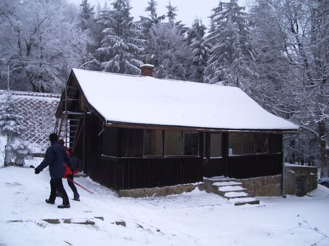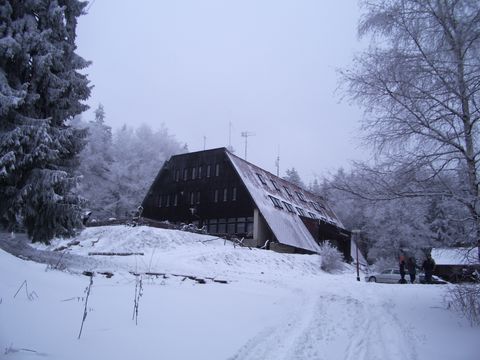 Rozcestník je před velkou chatou, tady je její zimní obrázek: