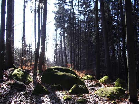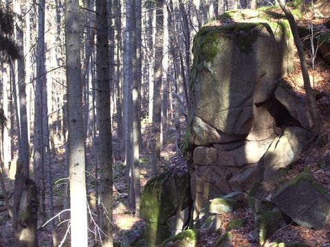 Naučná stezka je dlouhá 6 km, naším cílem byla Přední skála a můžu říct, že jsme si jí dneska užili – jen kamení, les a my dva. To kamení je žula, krásně tvarovaná, místy porostlá mechem.