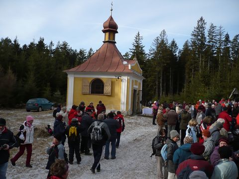 Došli jsme na 629 m vysoké zalesněné návrší, kde je kaplička z roku 1738, zasvěcená sv.Antonínu Paduánskému, naposledy opravená v roce 1995. (Pro zajímavost: sv.Antonín Paduánský pocházel vlastně z Lisabonu a v italské Padově udělal „církevní kariéru“ – víme to proto, že jsme se v Lisabonu byli podívat na jeho „domovský kostel“ ).
