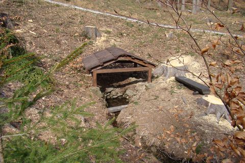 Při našich vycházkách v poslední době většinou nemáme jasný a konkrétní turistický cíl, je to jen taková sanace duší, lázeňská kúra. Mirek udělal nějaké fotky a tak vám je nabídnu, abyste viděli, že je i za humny pořád něco nového k vidění. Nejdříve studánka Pod Šacberkem: