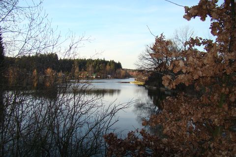 Další dva skoro zapomenuté rybníky jsou blízko Bukovna, na doslech dálničního přivaděče. Jsou hodně zarostlé a obávám se, že jejich osud je zpečetěn. Tak se za nimi vypravte, abyste je potěšili, za pár let je pohltí rákosí a křoviska, zatím vypadají v podvečerním slunci romanticky.