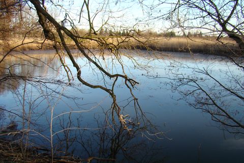 Už jsem se jinde zmínila, že se mi líbí i stromy bez listí – například průhledy na rybníky tak získávají zvláštní kouzlo. Dneska jsme šli přes Lesnov do Pávova a jinou cestou zpět do Bedřichova, na trase je hned několik rybníků, tady jsou fotečky. Nejdříve Pávovský rybník: