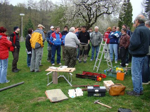 je místo, kde zjistili, že naše vědomosti o pěším a lyžařském značení jsou natolik dostatečné, abychom mohli turistické cesty nejen značit, ale i mít v průkazu KČT zapsanou kvalifikaci „vedoucí značkař“. Usmíváte se, ale zas taková legrace to pro nás nebyla. Museli jsme vědět. Dostatečnou dobu před začátkem školení jsme od našeho vedoucího značkařského obvodu obdrželi skripta A, B, C, D, abychom se mohli teoreticky vzdělávat v problematice značení, směrovek všech přesunů, informačních míst, topografie, používaných materiálů atd., což ovšem neznamená, že jsme je otevřeli a studovali. Spoléhali jsme na to, že prakticky víme, co se po nás žádá, ale s přibližujícím se termínem školení přece jen…
