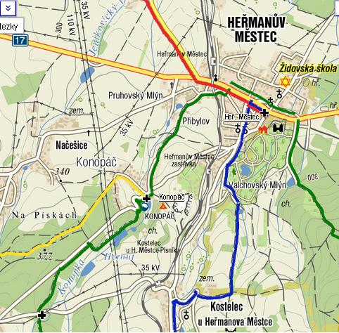 Nabízím vám mapku Konopáče a okolí, kde jsme strávili dva prodloužené jarní víkendy: