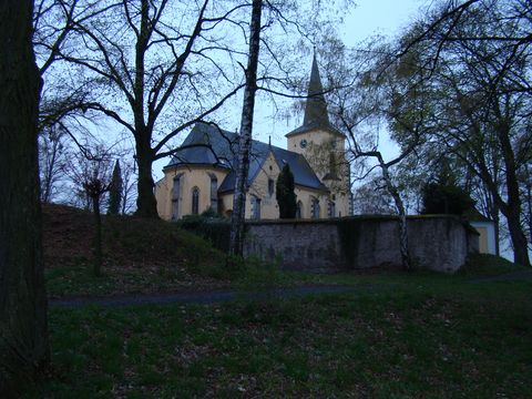 Kolem kostela jsou hradby, náspy a valy, celek je velice působivý. Abyste viděli, že kostel je opravdu vysoko, zařadím pohled od něj dolů na obec.