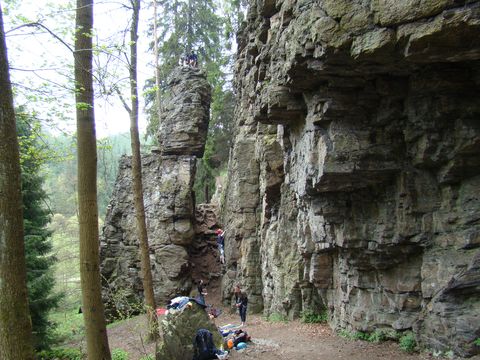 Mamut sice meditoval, ale horolezci na Rozštípené skále byli plni aktivity.