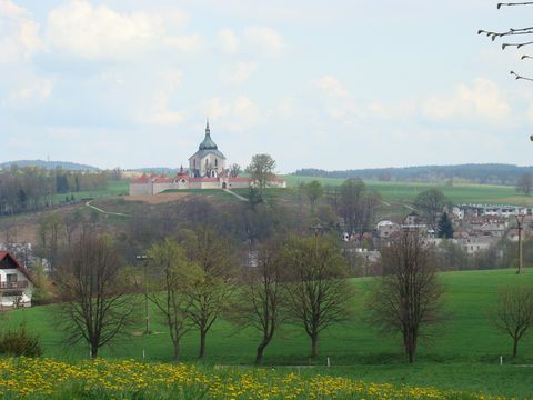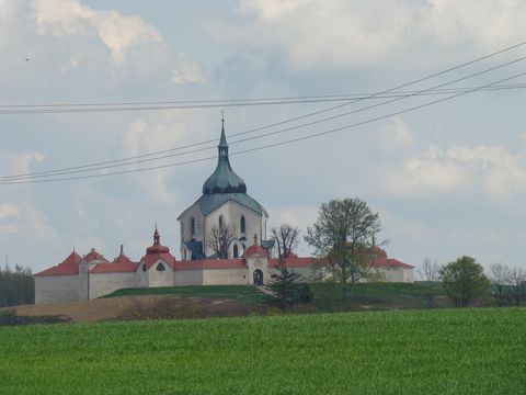 Pak jsme po žluté TZ pádili ke Žďáru a blízko Jordánku jsme uviděli Zelenou horu v původní úpravě – stromy kolem památky UNESCO byly vykáceny, objekt vynikl a tvoří dominantu širokého okolí.