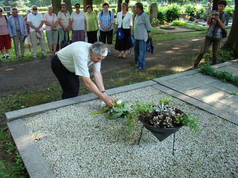 A tak jsme tentokrát přišli nikoliv v turistických botách a s batůžky, ale s kytkami, protože jsme zamířili na jihlavský ústřední hřbitov ke hrobům našich předchůdců a kamarádů. Sešlo se nás 32, nejvíce z odboru KČT Čeřínek, ale i z Tesly a Sokola Bedřichov, dokonce i někteří mimojihlavští, a přivítala nás Míla Bradová jako oficiální zástupce turistické organizace.