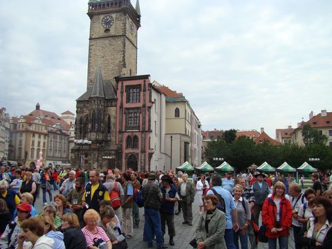 Už nějakou dobu se ve svých příspěvcích zmiňuji o tom, že rok 2008 je 120. výročím vzniku Klubu českých turistů. V sobotu se tedy setkali v Praze turisté z celé republiky, aby svou přítomností dodali výročí váhu a lesk. Předtím, ve středu 11. června, což bylo na den přesně 120 let od založení KČT, se v Betlémské kapli sešli na slavnostním shromáždění a koncertě lidé významní pro turistiku, ústřední vedení KČT a zástupci oblastí. Cestou do Prahy nám v autobuse o té slavnosti a výjimečně neturisticky oděných a vyfešákovaných turistech velmi emotivně vyprávěla Míla Bradová, jedna z účastnic z oblasti Vysočina, mimo jiné citovala i slova čestného předsedy KČT Ing. Havelky o „malém plamínku v srdci každého turisty, který…“, což jsme samozřejmě rádi slyšeli.
