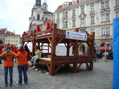 Pochod Prahou byl směrován tak, aby dnešní cíl byl na symbolickém začátku turistiky v českých zemích – na Petřínské rozhledně, prvním výsledku turistických snah v 19. století. Menší a mladší sestra Eiffelovky praskala v sobotu ve svých kovových švech, každý z turistů z ní chtěl popatřiti na Prahu.
