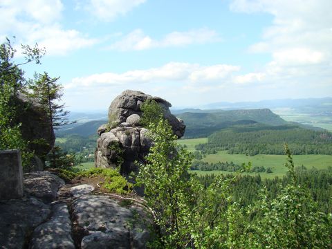 .) je ve znamení dalekých výhledů, u Raisovy chaty jsou pak za hezkého počasí (a to tedy bylo!) vidět Krkonoše, Železné hory, Bělohradská kotlina, Ještěd – co chcete víc?