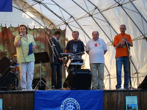 Do Lázní Bělohrad jsme se vrátili kolem páté odpoledne, právě když začínal slavnostní kulturní program v zámecké zahradě a tak jsme měli hoňku, abychom všechno stihli – místní folklorní soubor Hořeňák, vystoupení Jardy Vály z oblasti KČT Vysočina, který byl hostem v pořadu redakce časopisu Turista, a taky předání pořadatelské štafety – LTS bude v roce 2010 v Poličce na Vysočině.