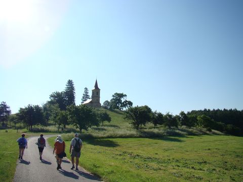 Ráno jsme tedy zamířili z Bělohradu přes areál lázní k nedalekým Byšičkám, což je návrší s poutním kostelem sv. Petra a Pavla a je neodmyslitelně spojené s Erbenem, sem prý umístil děj své balady Svatební košile.